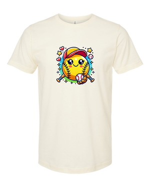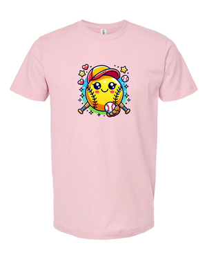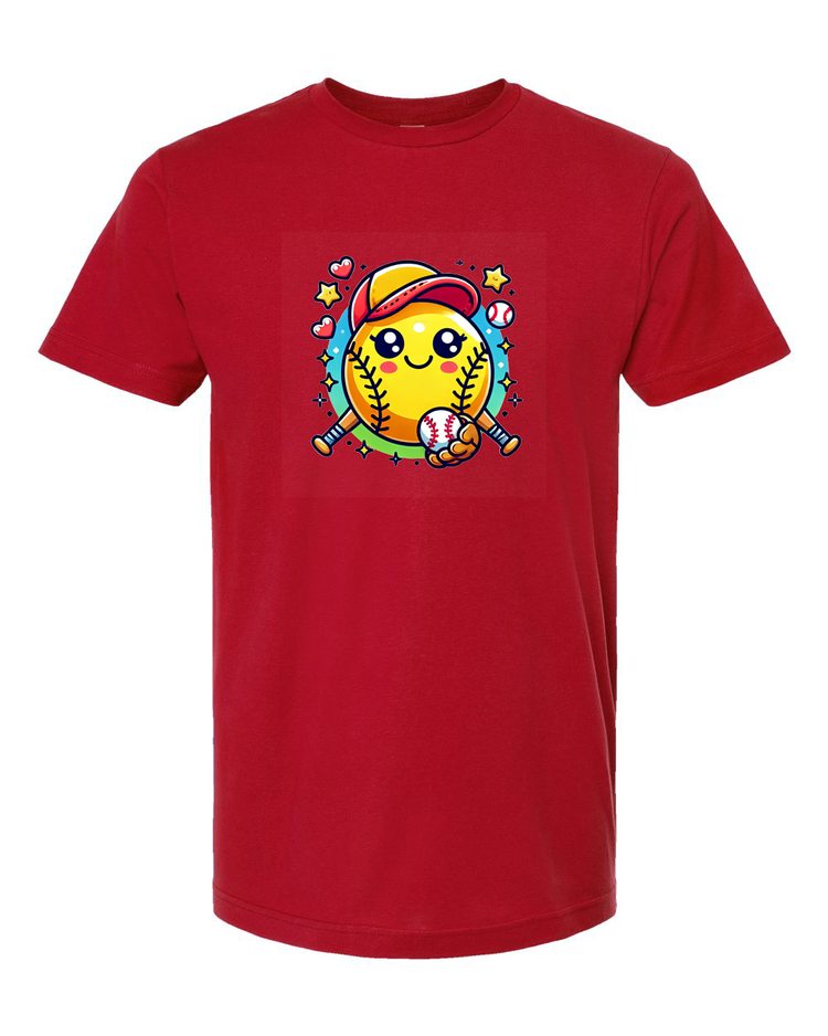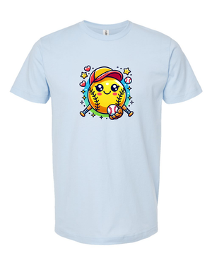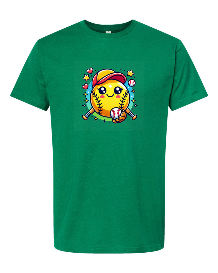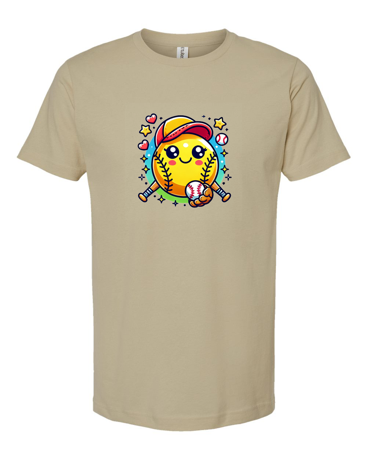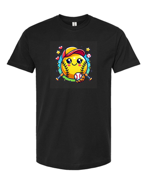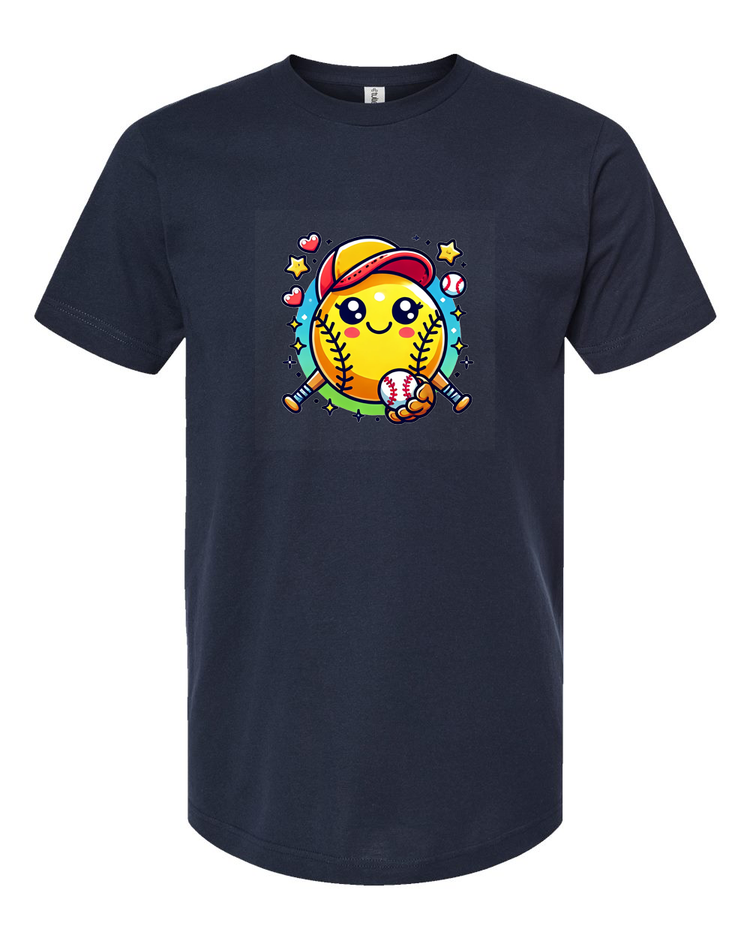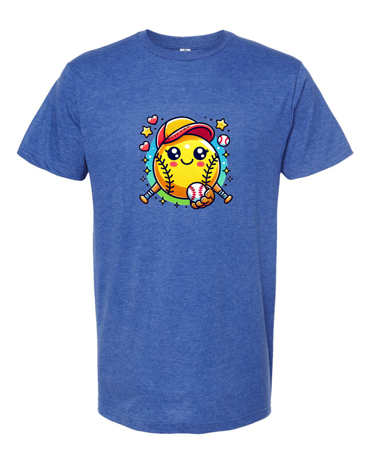 Step up your style game with this adorable softball emoji t-shirt! Featuring a cute and cheerful softball character with a baseball cap and bat, this tee is perfect for softball lovers of all ages. Whether you're on the field or cheering from the stands, this fun and playful design is sure to bring a smile to everyone’s face.