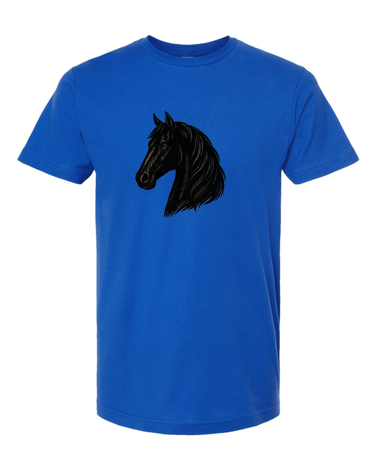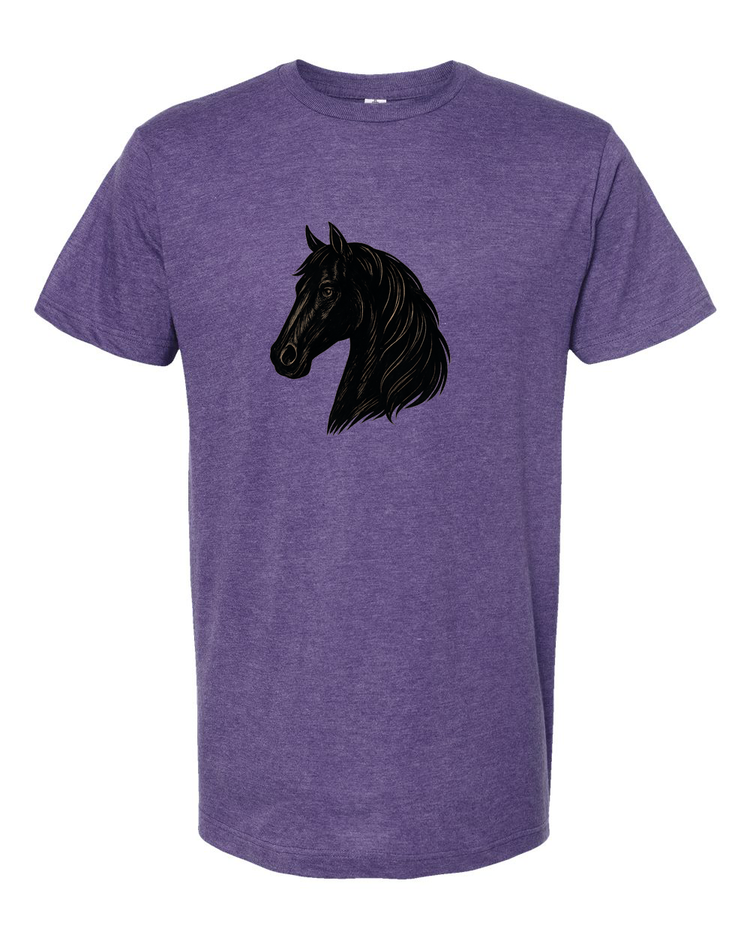 This graceful horse profile design is simple, bold, and beautiful. A great everyday tee for riders, trainers, and anyone who can’t resist a good horse silhouette.