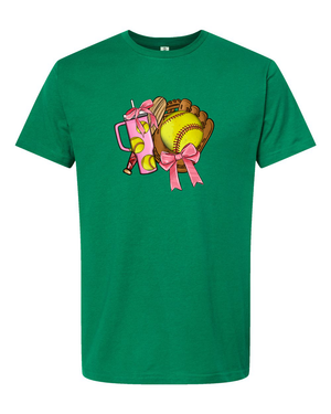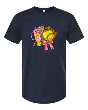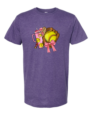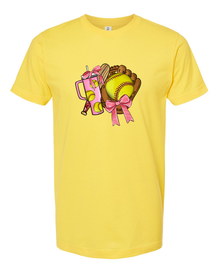 Bring the sparkle to the dugout with the Bows Before Throws: Softball Mama Tee—a fun and fierce tribute to moms who know how to mix grit with glam. Featuring a yellow softball dressed in pink bows, crossed bats, and lightning bolts, this design is all about showing up with style and spirit. Whether you're cheering from the bleachers or running the post-game snack table, this tee lets everyone know who runs the diamond.